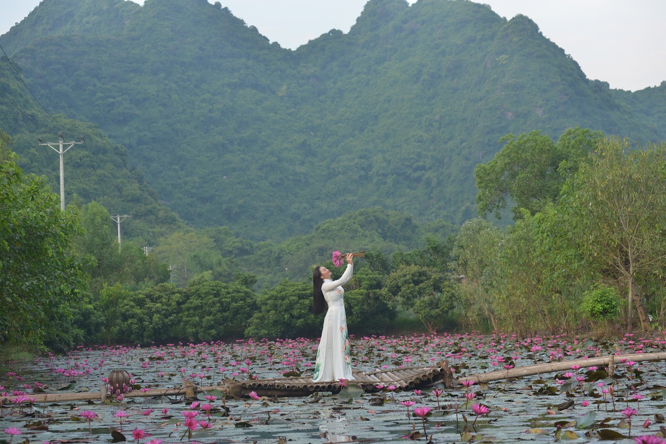 Fall is also the time when Yen stream is brilliant with water lilies in full bloom. On the water surface, clusters of pink, purple, and white flowers bloom, dotted with deep blue like the pure colors of a natural painting. Under the soft yellow sunlight, the water lilies stand proudly, making the whole stream seem to glow. It is not only a scene to preserve in frames, but also an experience that makes us calm down, feeling like nature also knows how to soothe the human soul.